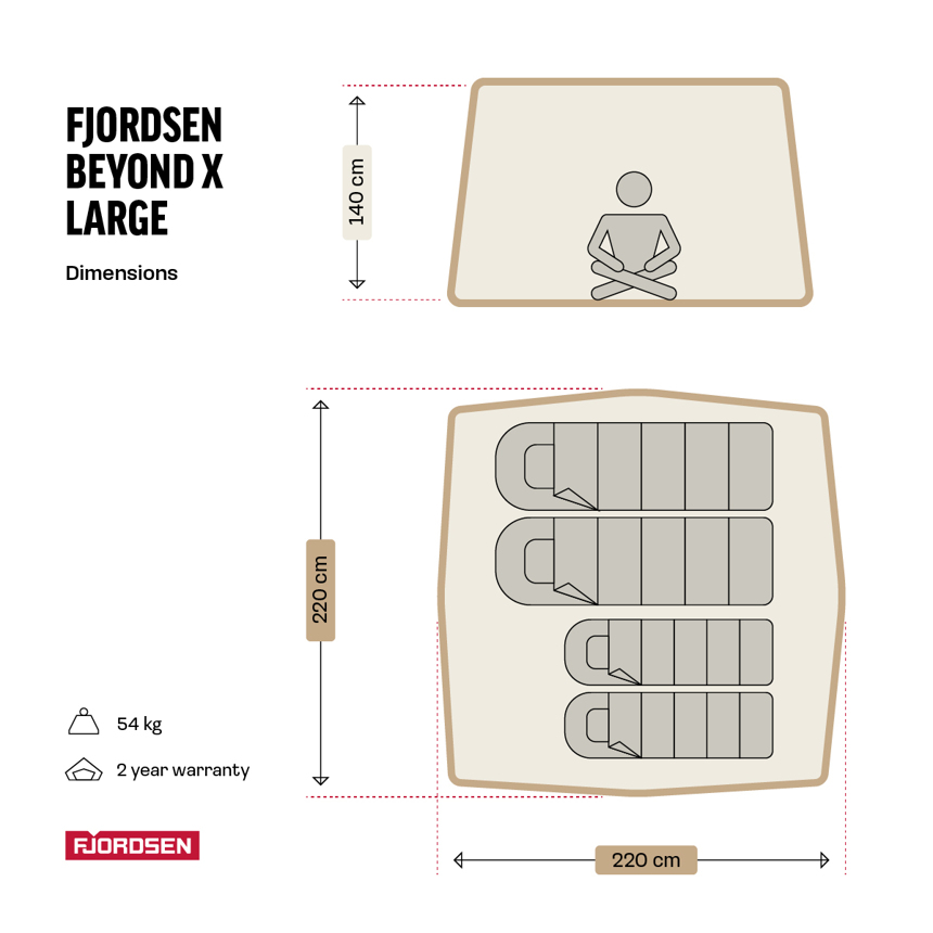 With the Fjordsen Beyond X Large rooftop tent you experience 6,3 M3 of camping fun! The Fjordsen Beyond X Large has a clever construction, fresh-and-black cover to keep the lower temperatures inside and thoroughly tested platform.